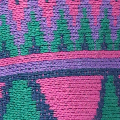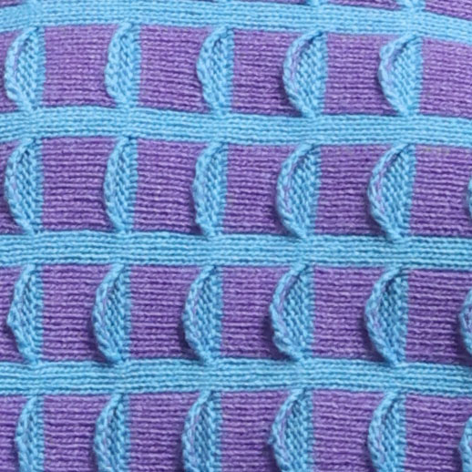 Amethyst (background purple) Cyclamen (dark pink), Fiesta (pink), Sky (blue)